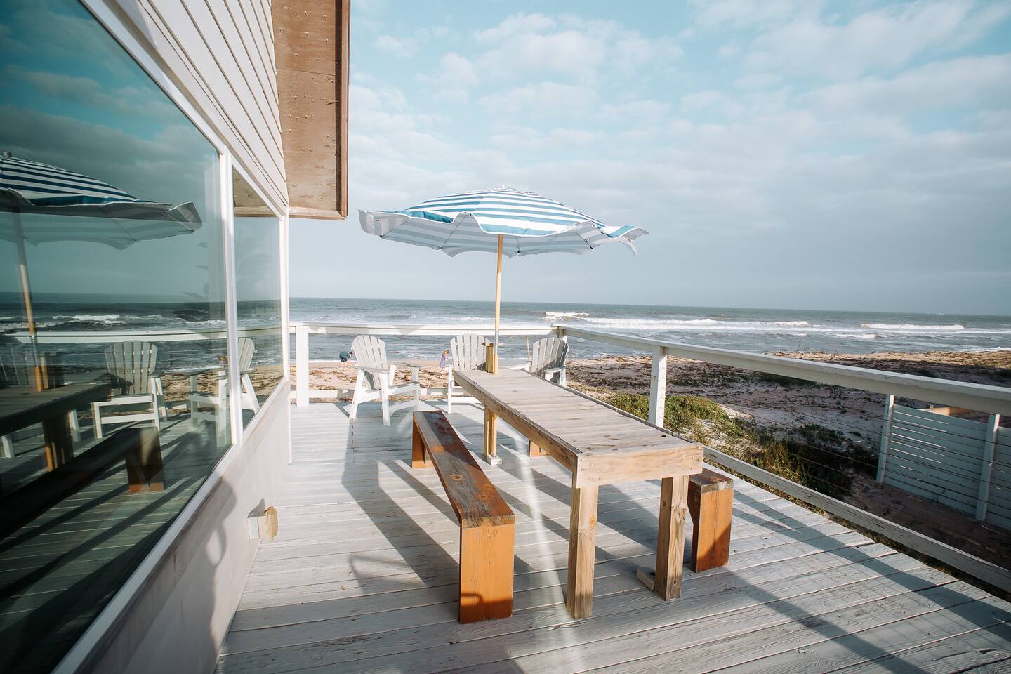 Nestled between the Atlantic Ocean to the East and the Intracoastal Waterway to the West, this home offers the ultimate saltwater paradise. Start your day with a peaceful sunrise beach stroll, explore the historic charm of downtown St. Augustine, and end with a picturesque sunset dinner at one of the many waterfront restaurants. Your perfect getaway awaits, blending natural beauty, history, and relaxation. Quick Stats: -Beachfront location: Step outside and enjoy the stunning views and easy access to the beach. -Fully loaded kitchen: Everything you need to cook your favorite meals, from utensils to appliances. -2 upstairs bedrooms (technically third floor): Comfortable and spacious rooms, perfect for a good night's rest. -1 downstairs bedroom (technically second floor): Ideal for easy access -Streaming through YouTube TV: Catch your favorite shows and movies with streaming services right at your fingertips. - Laundry in garage on ground level -Outdoor patio with dining & furniture: Relax and dine al fresco while soaking in the fresh air and beautiful views. -Beach supplies (chairs, boogie boards): Ready for a day in the sand and surf—everything you need to enjoy the beach. -Outdoor shower: Rinse off after a fun day at the beach, keeping the indoors sand-free. -Pets allowed: Bring your furry friends along to enjoy the getaway with you. Important reminders for guests: 1. No Parties, Events, or 3rd Party Bookings: Please note that any unauthorized parties or events, including third-party bookings, are strictly prohibited. Violation of this policy will result in immediate termination of your stay without refund and removal from the property. 2. No Tampering with Cameras: For your safety and security, please refrain from tampering with any surveillance cameras on the property. Any attempt to do so will result in immediate termination of your stay without refund and removal from the property. 3. Parking Regulations: A maximum of 7 vehicles are allowed to be parked at the house at any given time. Street parking is not permitted, and parking on the grass is prohibited. Please adhere to these parking regulations to ensure a pleasant stay for all guests. 4. Minimum age to rent is 21. The person who makes a reservation must occupy the residence for the duration of the reservation. Thank you for your cooperation and understanding. We strive to maintain a safe and enjoyable environment for all our guests. Please be aware that this property is equipped with Ring cameras on the exterior pointing towards the driveway, which record both audio and video. These cameras are in place to ensure the safety and security of all guests and the property. Once guest check in, cameras are not monitored. We respect your privacy and use these surveillance measures responsibly. If you have any concerns or questions regarding the surveillance system, please feel free to reach out to us. This property is situated in a tropical climate zone in Florida, where guests may come across a variety of wildlife and insects. This includes snakes, lizards, exotic reptiles, vermin, iguanas, raccoons, feral cats, alligators, non-native primates, and other wild animals. Additionally, various bugs such as ants, honey bees, palmetto bugs, and roaches may be present on the property. While encountering such wildlife and insects is common in this environment, we advise guests to exercise caution and respect their surroundings. Avoid approaching or provoking wild animals and take appropriate measures to prevent insects from entering the property. Should you encounter any concerns during your stay, please don't hesitate to contact us for assistance. The Atlantic Ocean teems with beauty and wonder. If you choose to explore its waters, please exercise caution regarding wildlife like sharks, jellyfish, and rays. Respect their habitats and remain vigilant while enjoying your ocean adventures. This beachfront home is built on raised support beams, engineered to withstand the challenges of coastal living. The home’s unique construction includes a “floating” floor system in the main living areas, designed to flex and adjust naturally with the changing climate throughout the year. Any slight movement you may notice is perfectly normal and part of this smart design. Lastly, for your convenience, a washer and dryer are located on the main floor in the garage.
