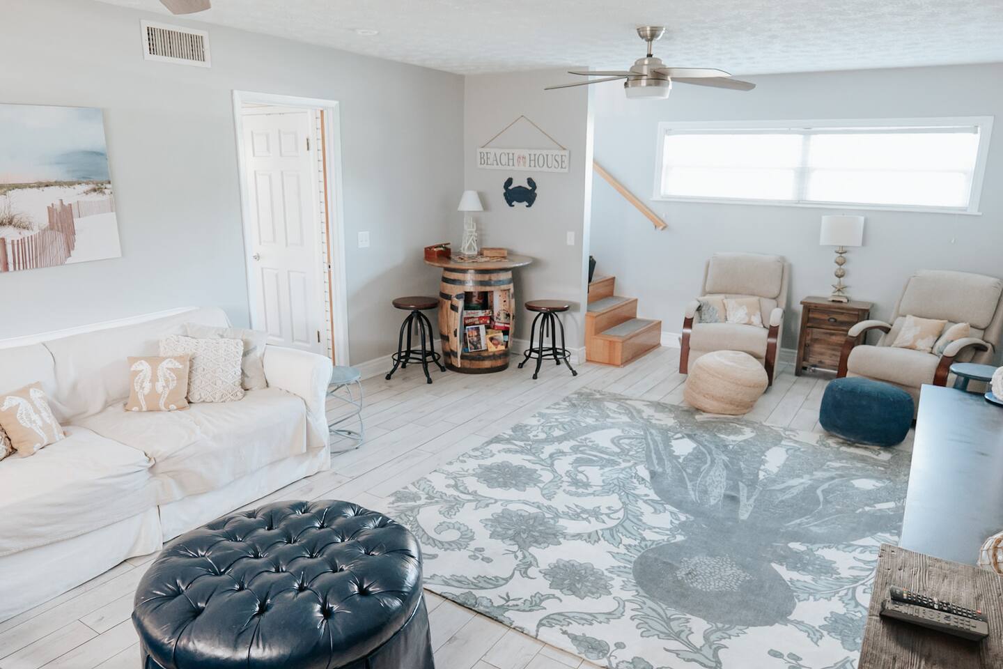 Welcome to Amelia Breeze, your perfect family retreat just 600 feet from the beautiful ocean on Amelia Island! Whether you're splashing around in the pool, having a friendly competition in the game room with ping pong and foosball, or enjoying a delicious meal with loved ones at the outdoor dining space, there’s something for everyone. Explore the charming streets of Fernandina Beach with its cute shops, waterfront dining, and welcoming atmosphere. Whether you’re here to relax or seek adventure, Amelia Breeze is the place to create lasting memories. Quick Stats: ✅ Just 600 feet from the beach ✅ 3 cozy bedrooms, 3 bathrooms ✅ Fun-filled game room with ping pong & foosball ✅ Private pool for the whole family ✅ Outdoor grill & dining area for family meals ✅ Sleeps 9 guests comfortably ✅ Fully equipped kitchen to cook up your favorite meals ✅ Beach gear provided for your convenience ✅ Just minutes from the historic charm of Fernandina Beach Important Guest Information: 🔹 To ensure a peaceful environment, we kindly ask that there be no parties, events, or third-party bookings. Violations may result in immediate cancellation. 🔹 For your safety, security cameras are located in the front yard. Please refrain from tampering with them. 🔹 We can accommodate up to 4 vehicles in the driveway; please avoid parking on the street or grass. 🔹 The minimum rental age is 25 Wildlife & Nature Notice: Amelia Island is home to some fun wildlife, like lizards, raccoons, iguanas, and native insects. While we do regular pest control, we recommend keeping doors closed to minimize visitors. If you’re exploring the ocean, be mindful of jellyfish, rays, and sharks. 📍 Book your stay today and let Amelia Breeze be the spot where you create unforgettable memories with your family!i